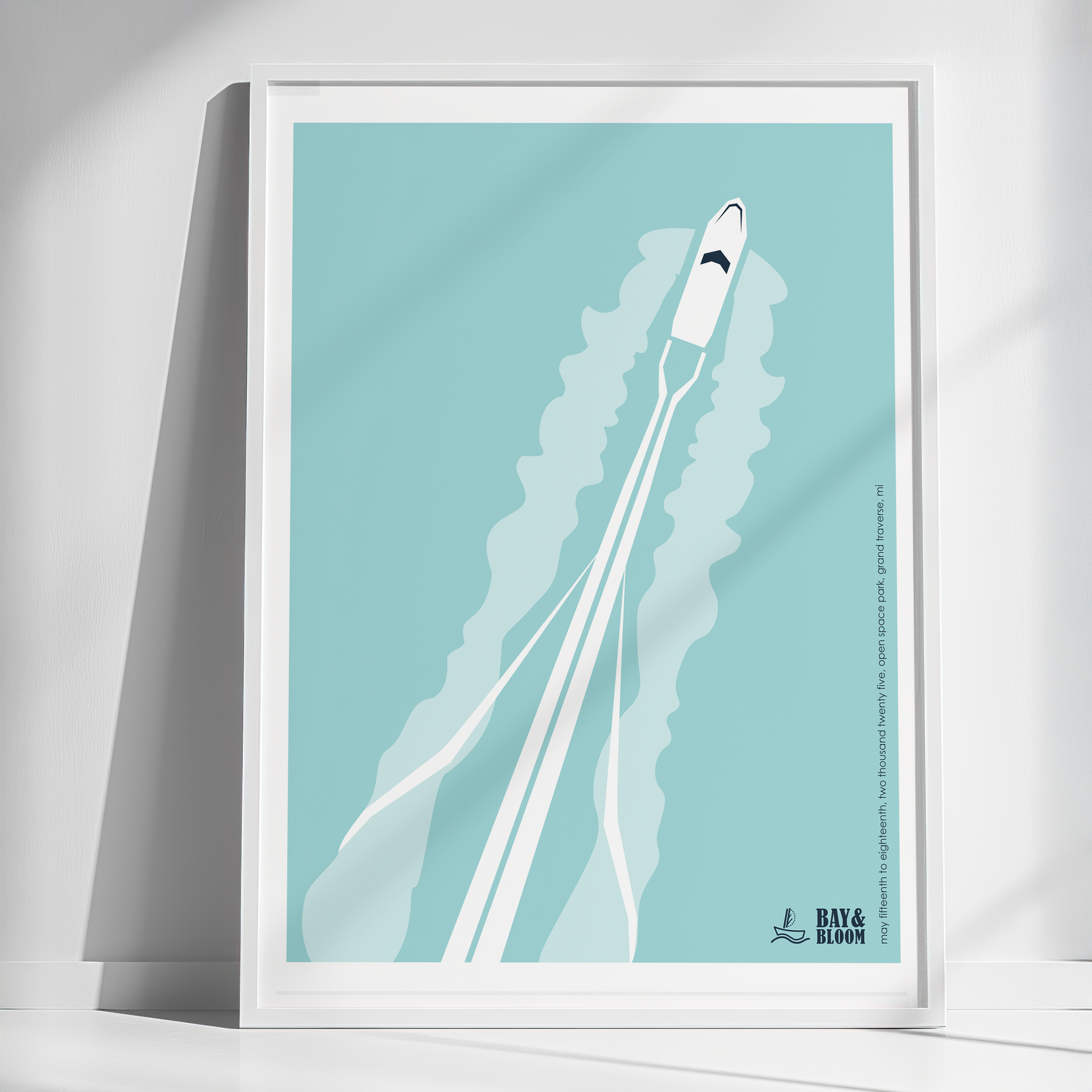 Poster design for Bay&Bloom, a fictional festival local to Traverse City. This Swiss-inspired poster is simplistic, reinforced by minimal vector illustration and a limited color palette. Full set of deliverables includes logo, poster, postcards, merch, and event signs. Coming soon.